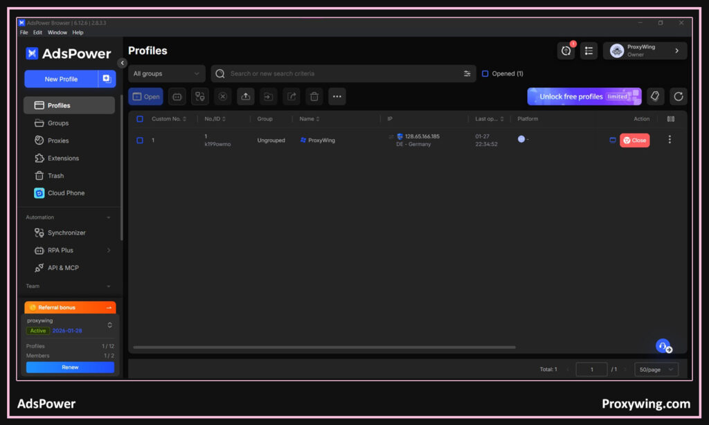 - Integration capabilities: While this anti‑detect browser offers easy proxy and team collaboration setup, its ecosystem for third-party service discounts or built-in residential proxies is considered more limited than competitors like AdsPower