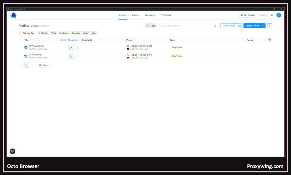 For the best performance and user experience, they are often paired with proxies so both the fingerprint and IP address match the same location and device type. Using high-quality proxies is recommended. ProxyWing offers high quality residential, ISP, and datacenter proxies that help ensure consistency and lower detecting rates.