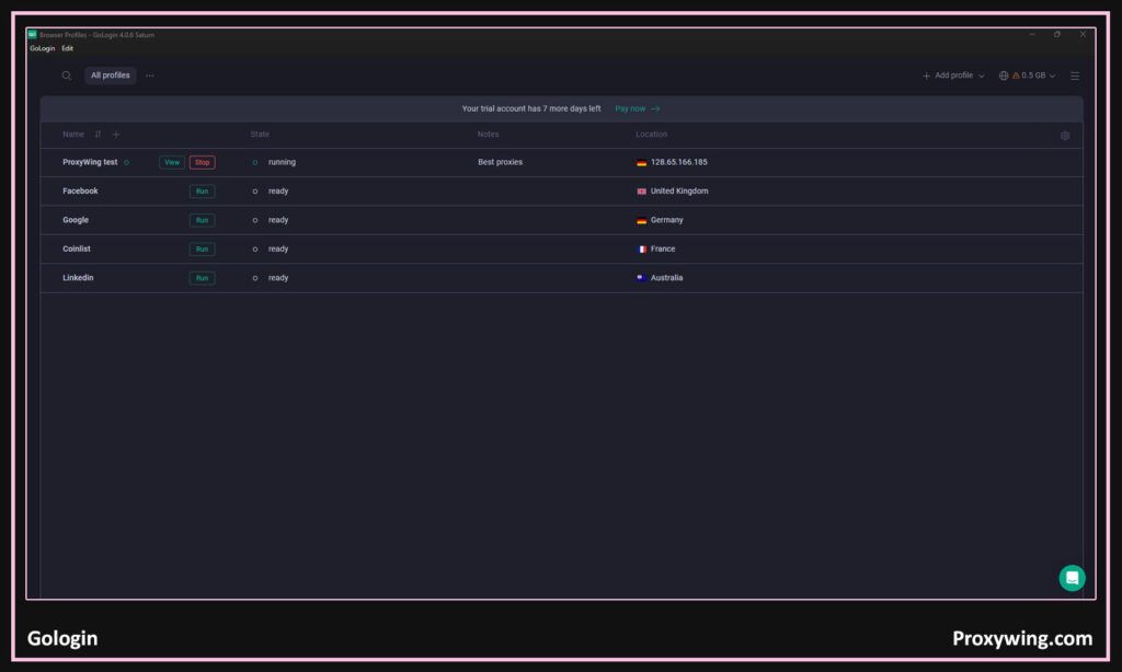 - Proxy handling: It supports multiple proxy protocols and allows easy assignment of proxies for each profile.