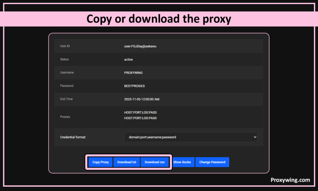 5. Copy or download the proxy using the buttons at the bottom.