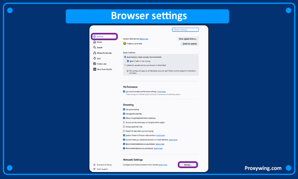 A large number of browsers we use are built on the Chromium engine. To configure proxies on such browsers, you can read our article about Google Chrome, Edge, Yandex, Brave, Opera. The Firefox browser is built on a different engine, which allows you to set up proxies directly in the settings. We will provide a detailed guide on how to set up proxies in this browser.