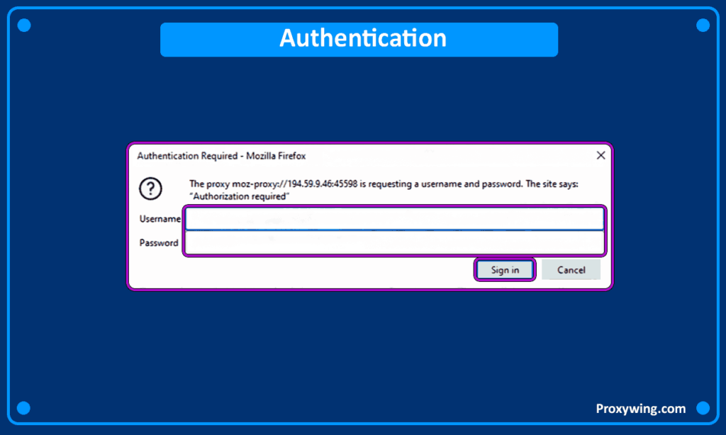 When accessing any website, if you are using private proxies that require authentication, a window will appear prompting you to enter a «Username» and «Password». To check the functionality of your proxy, you can use our IP Checker tool.