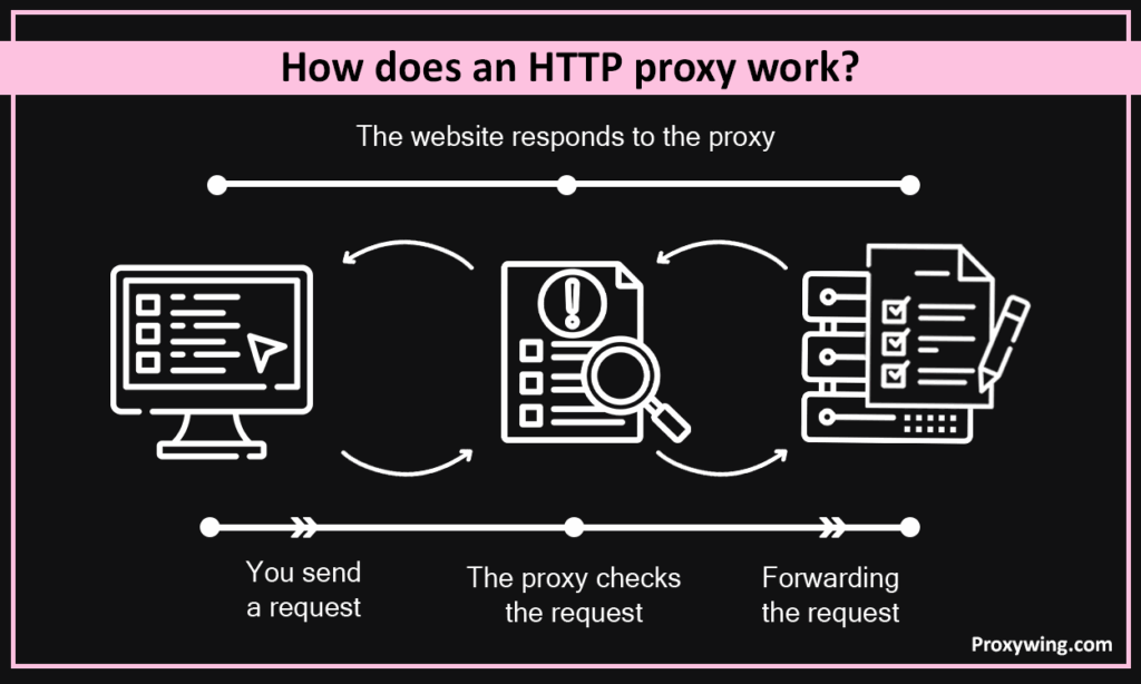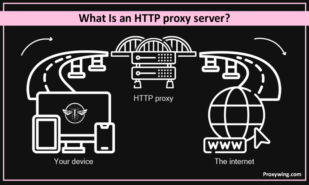 An HTTP proxy is an intermediary server between your devices and the internet. It is primarily designed to handle web traffic, and works specifically with the HTTP and HTTPS protocols, which are used for most websites and web applications. When using an HTTP proxy, your requests are first sent to the proxy server before being forwarded to the web app or website you intend to access. Using this setup hides your IP address from these websites and web apps.