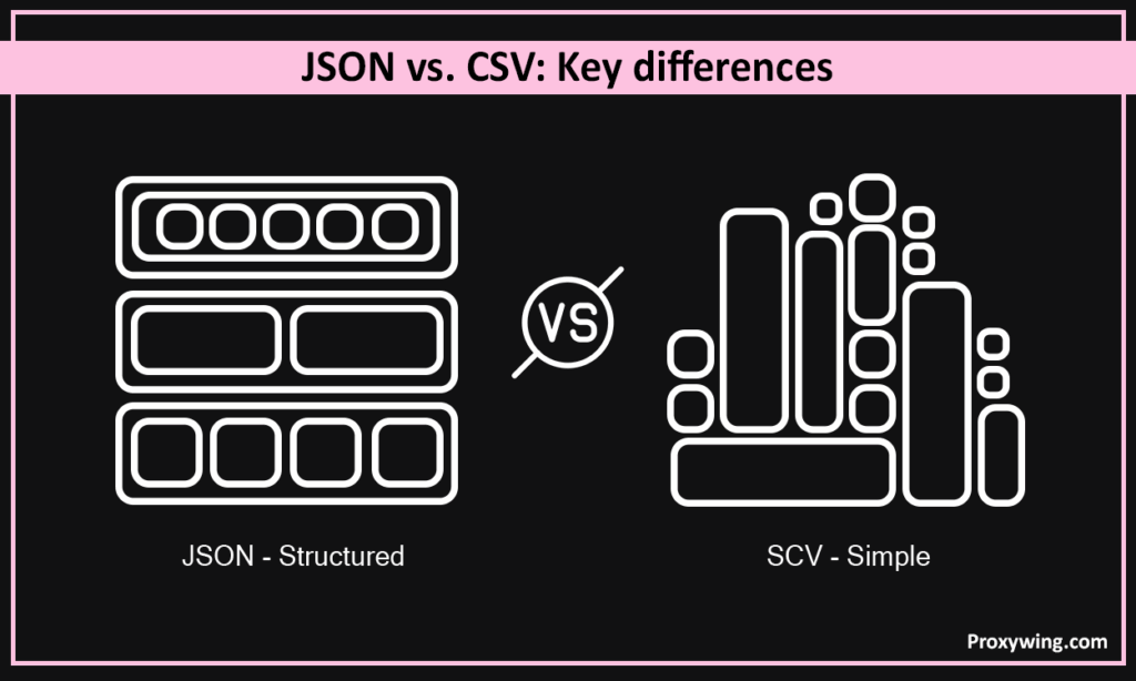 JSON and CSV serve different purposes, and choosing the right one depends on how your data is structured and how it will be used. In this section, we will discuss the key differences between these data formats using four major factors: