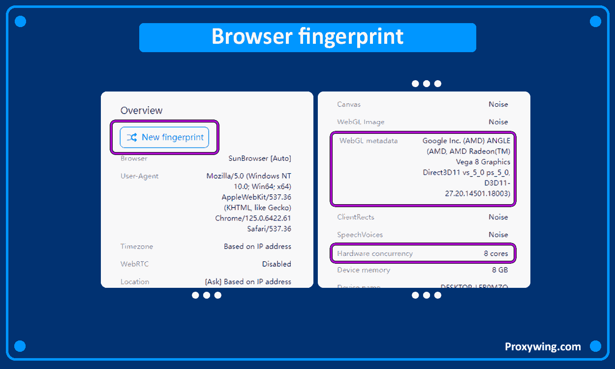 Using a proxy does not guarantee complete security and anonymity. Even when changing your IP, a lot of information about the user can be collected. This includes your hardware components, operating system, fonts, the number of monitors you use, their size, and much more. All of this information together is known as a “digital fingerprint.” Various websites, including social networks and other platforms, request this data from users daily.