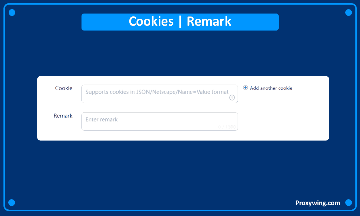 If you are purchasing social media accounts with cookie files, you can insert these data below the user agent selection. Further down, you can add notes for each profile.