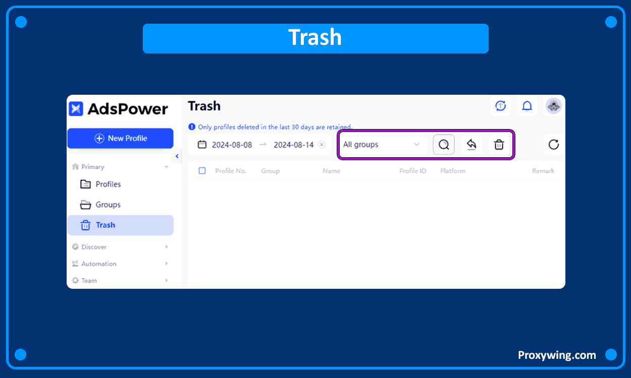 Allows users on a paid plan to restore a deleted profile within 7 days, preserving all settings.