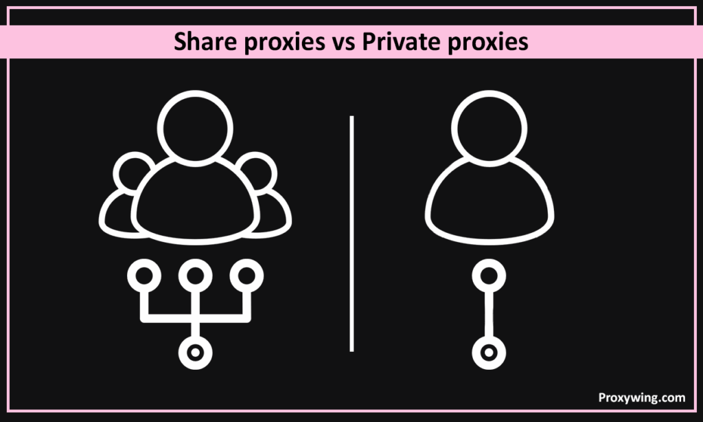 | Privacy and control | Shared proxies hide your IP from the sites you access, but they are not as private since that same IP is being utilized by other users. As a user, you also have limited control how others may use the IP address | Private proxies offer the most privacy as each user has their own IP address, so they have more control on how they use it. |