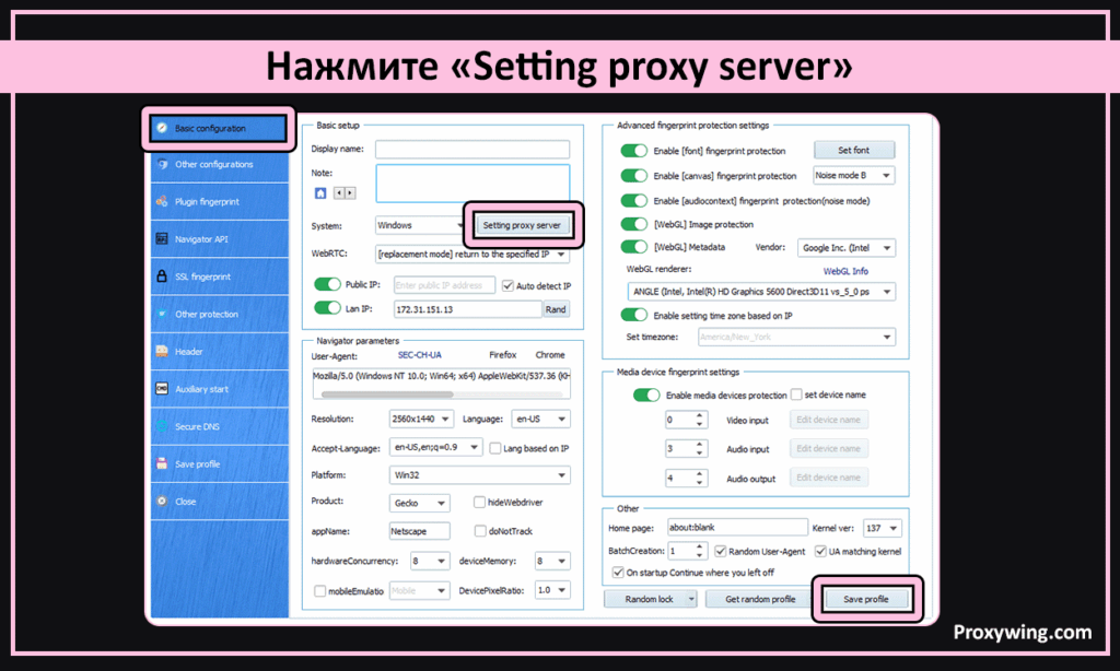Настройка прокси от ProxyWing