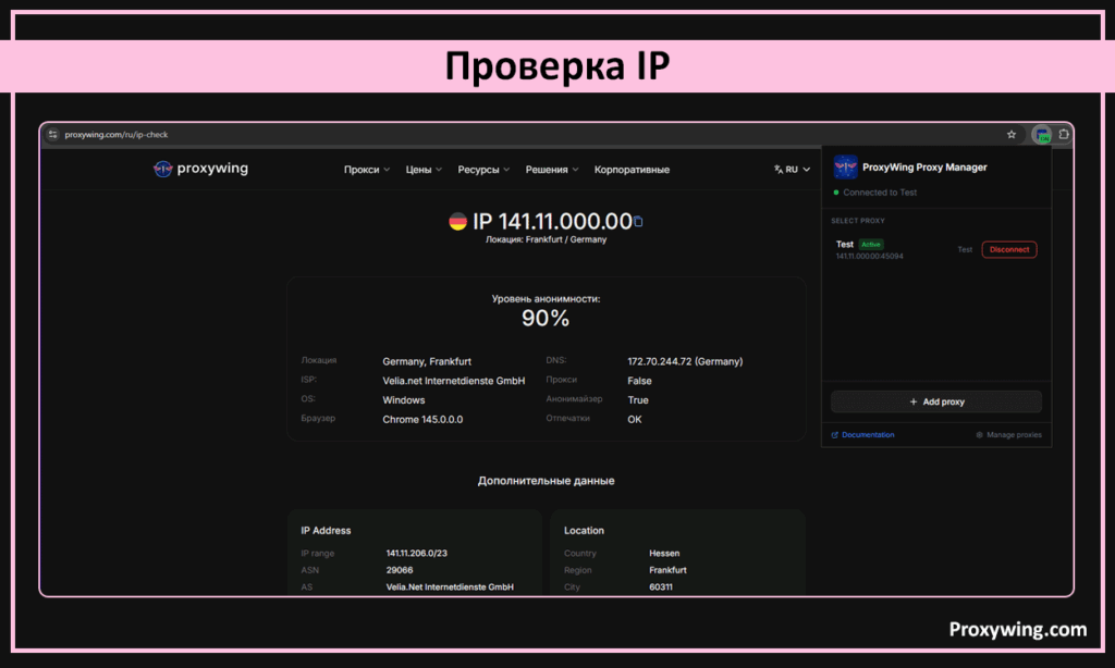 Сохраните профиль. Активируйте соединение. Теперь Chrome будет направлять трафик через новый адрес. Вы можете посетить сайты вроде Proxywing IP-chcker, чтобы убедиться в смене вашего реального IP. Скорость настройки делает браузерные расширения отличным выбором для многих.