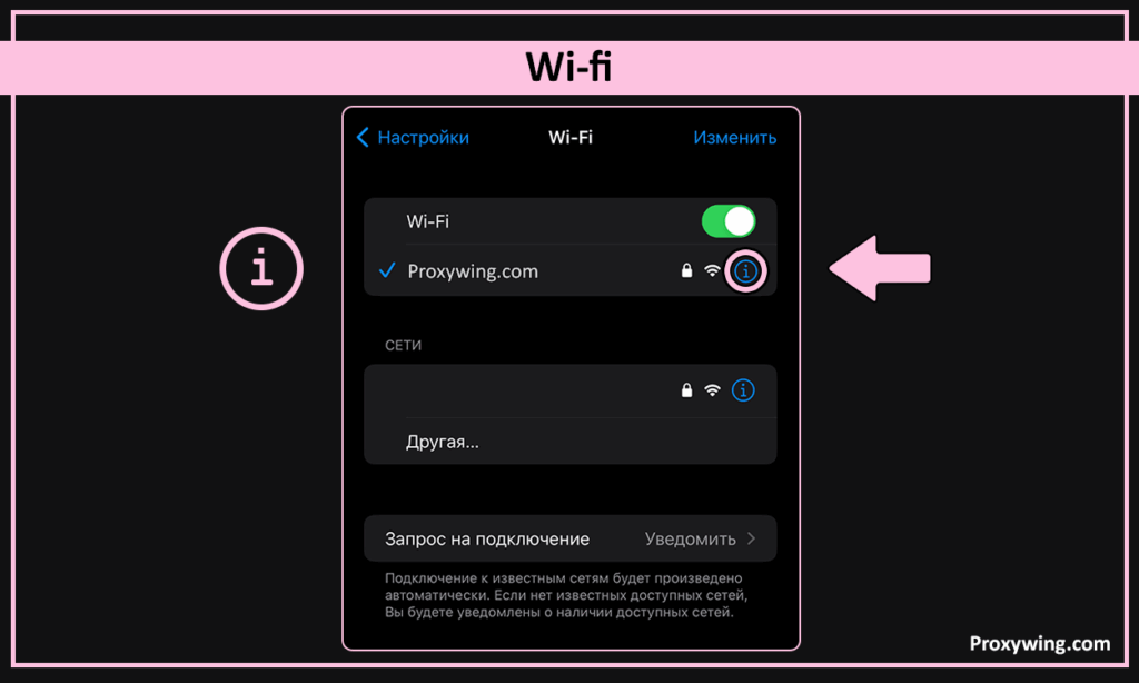 Для настройки прокси потребуется wi-fi подключение. Нажмите «Wi-Fi»