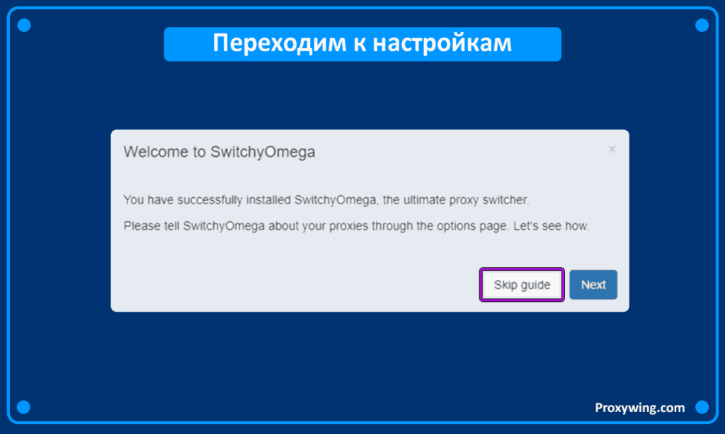 Подтвердите установку и пропустите встроенный гайд «Skip guide»