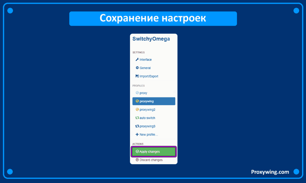 В левой части после настройки прокси нажмите «Apply changes», чтобы сохранить изменения.