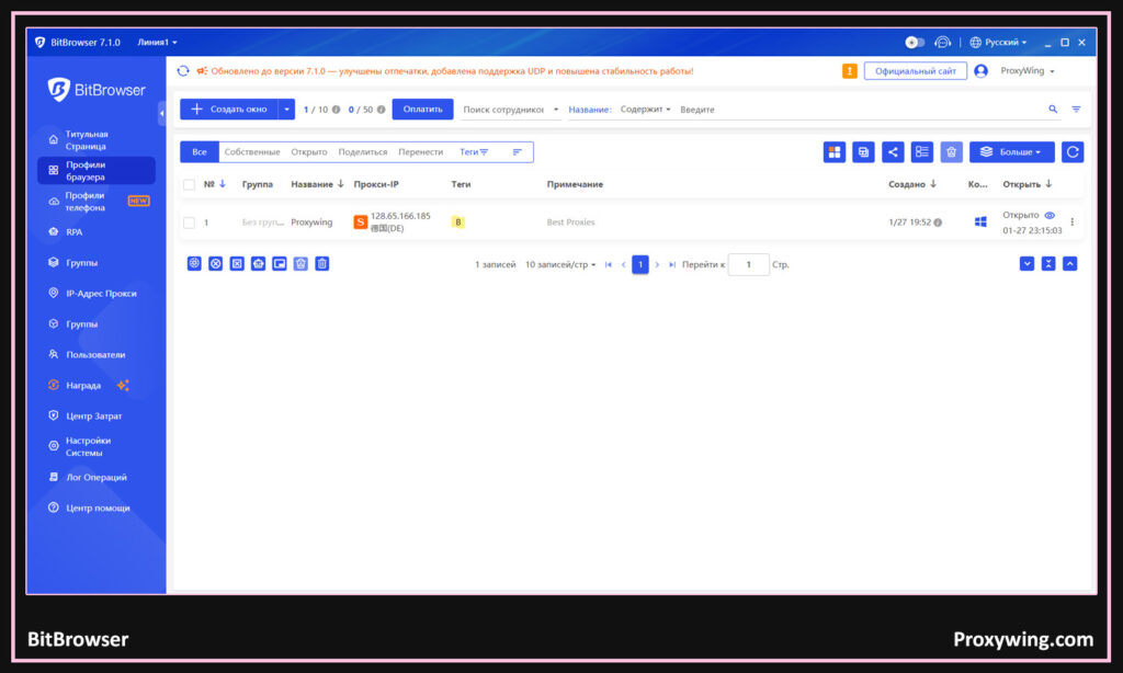 | BitBrowser | Простое управление отпечатками База Chromium Маркетплейс RPA | Легок в использовании и дружелюбен к новичкам | Бесплатный план и платные тарифы от $10/месяц |