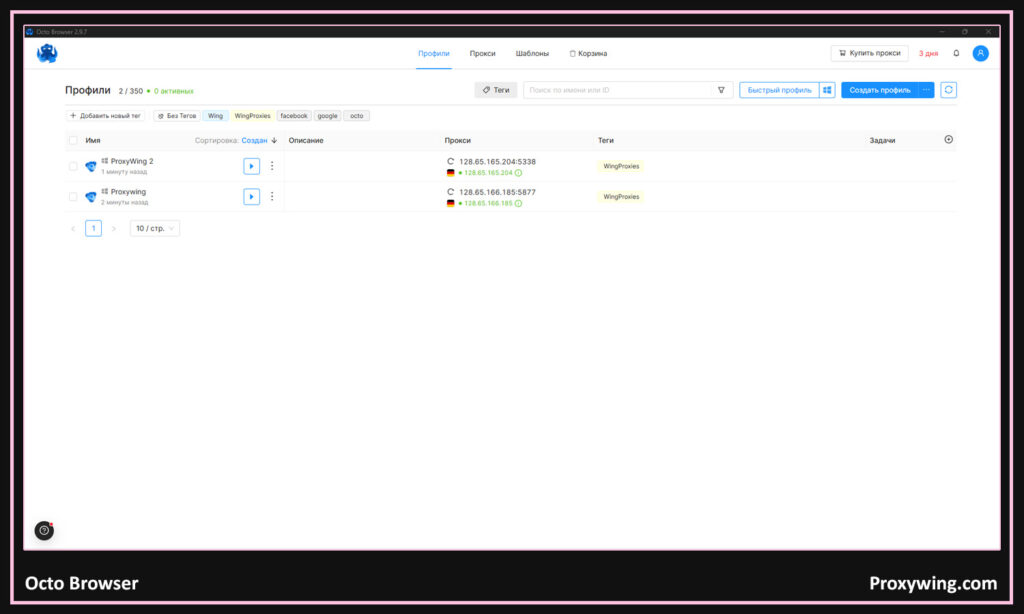 - Работа с прокси: у GoLogin есть встроенная интеграция прокси.