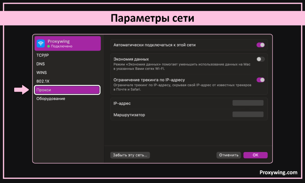 Браузер Brave построен на ядре Chromium, он не поддерживает настройку прокси внутри браузера. Но если вы настроите прокси на всю операционную систему то исходящие запросы в браузере будут направляться через прокси. Далее мы подробно разберем, как настроить прокси на Windows и macOS. Если вам нужно настроить прокси только для работы в браузере, вы можете воспользоваться расширением ProxyWing Proxy Manager, доступным для Chrome и Firefox. Подробнее о его возможностях и настройке можно узнать в подробной документации.